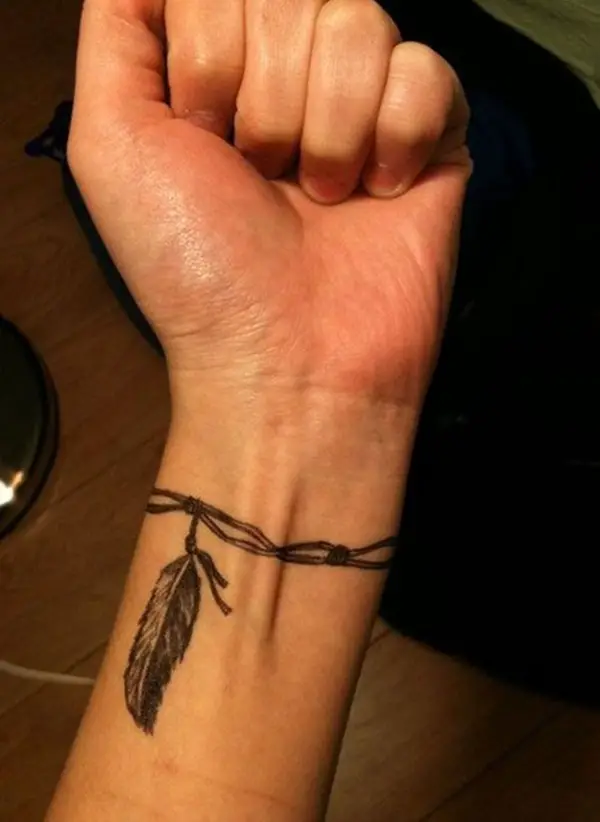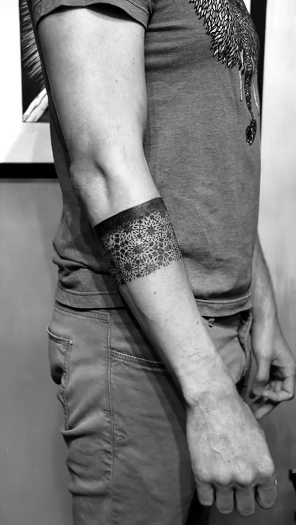 If you are in search for masculine armband tattoo designs for men, then design should definitely be checked. This design runs across the arm in the form of a chain. The presence of a chain resembles strength and resistance. The chain gets joined with a feather design at the front. The major attraction of this tattoo is the superb detailing. Every loop of the chain along with the feather appears quite real. One can also use a slight tint of red colour for highlighting the whole design.
