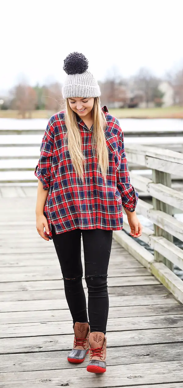 Are you looking for a formal way to wear your favorite flannel button-down shirt? Try pairing it with your skinny pants this fall. This outfit idea is categorized by cute wardrobe collection for plaid flannel lovers. Plus, anyone can try this look and great to wear to a party or other casual gathering. Here you also check some of the best Office Outfits to wear this Winter.