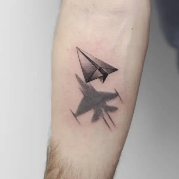 Talking about Inspiring Travel Tattoo Ideas For Wanderers, you certainly can’t overlook a paper aircraft with a trail. Although it’s a common tattoo that travel enthusiasts get done, it expresses everything in the mind of a travel aficionado in the simplest possible way. An aircraft signifies travel, and the trail behind it says that the plane is always on the move, and it’s not static.